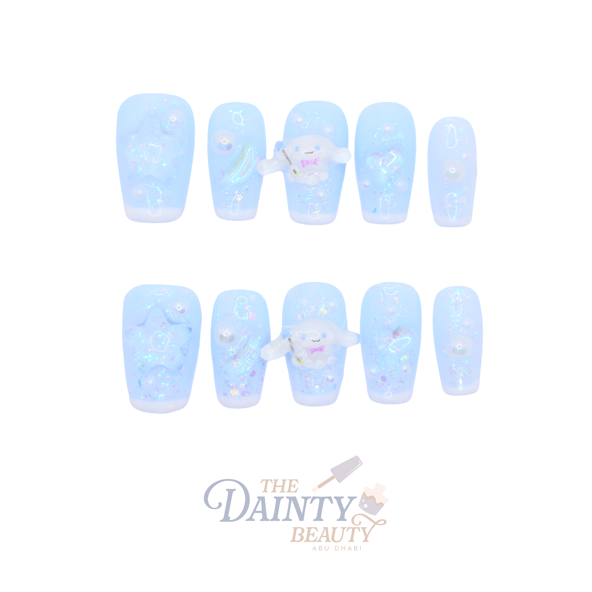 Float into a world of cuteness with Cinnamoroll. Drenched in a soft baby blue shade and sprinkled with sparkling glitters, this set captures the joy of pure happiness.