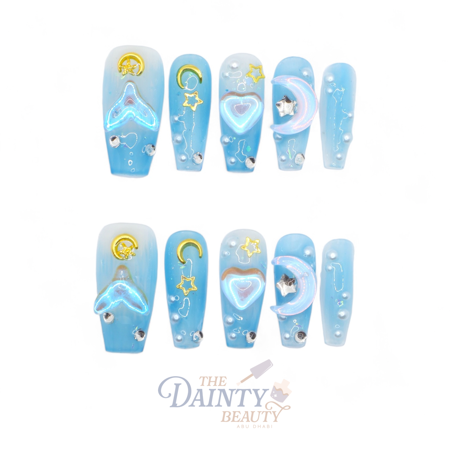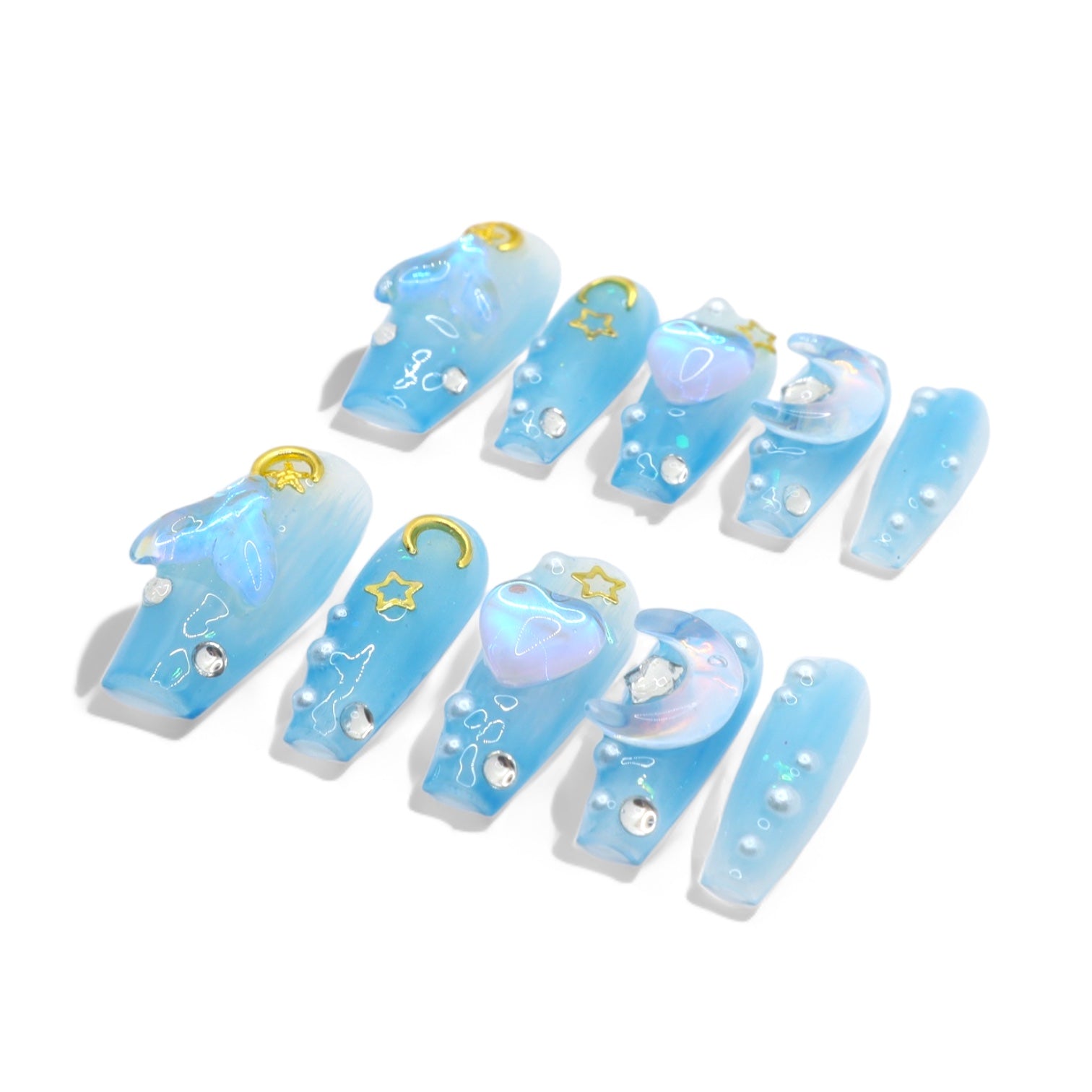 Capture the essence of the sea and night sky in these enchanting press on nails.
