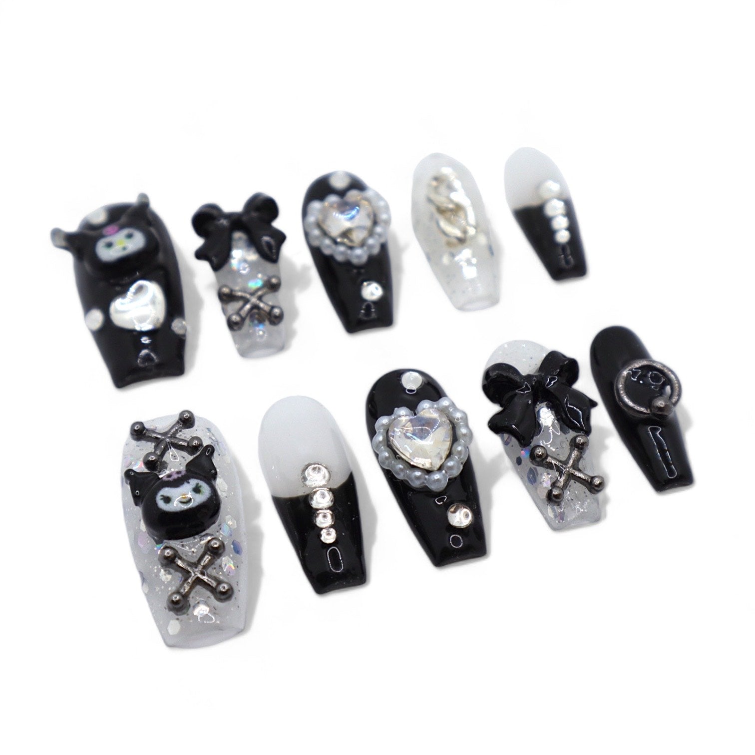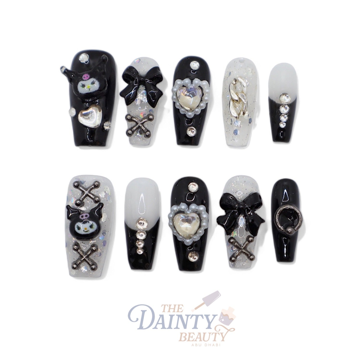 Nail the rock vibe with Kuromi, sporting bold chains, black accents and her signature mischievous charm for an edgy look.