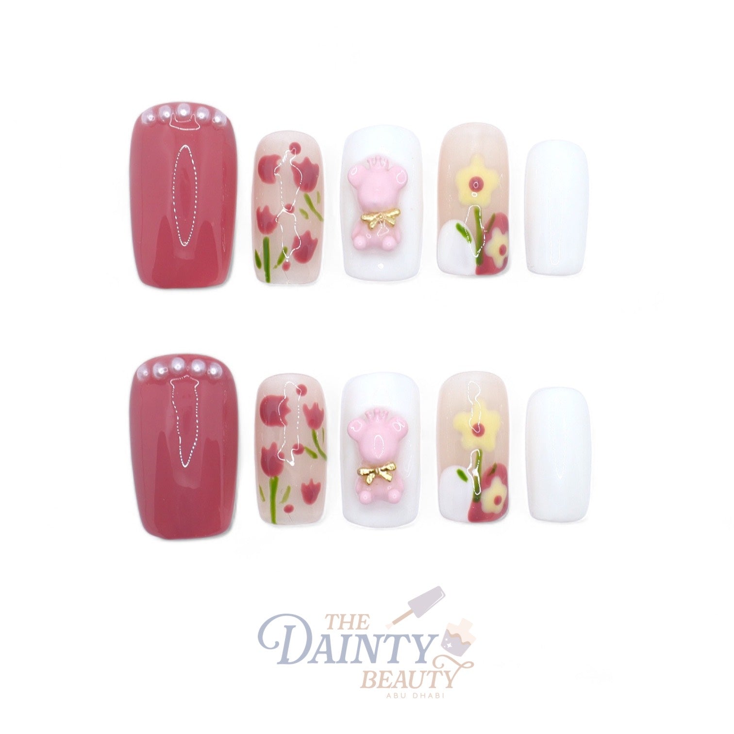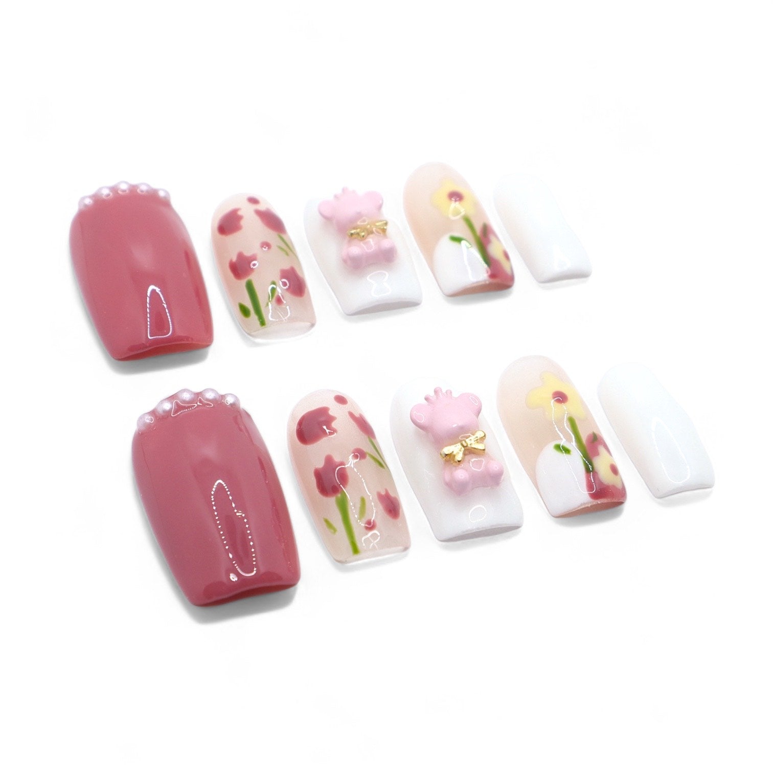 Radiating the joyful hues of spring, adorned with charming tulips and a playful pink bear.