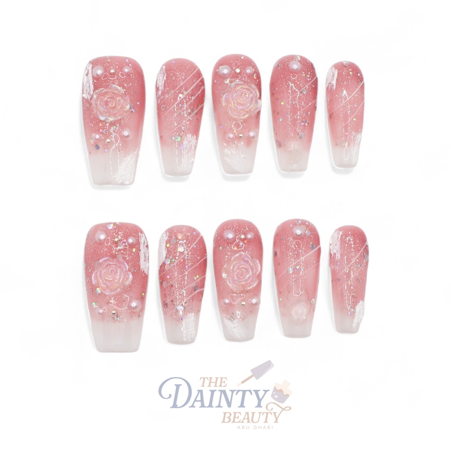 Radiating the sweetness of Valentine's Day, with delicate roses, sparkling glitters, and lustrous pearls adorning them for a captivating and enchanting look perfect for romance.